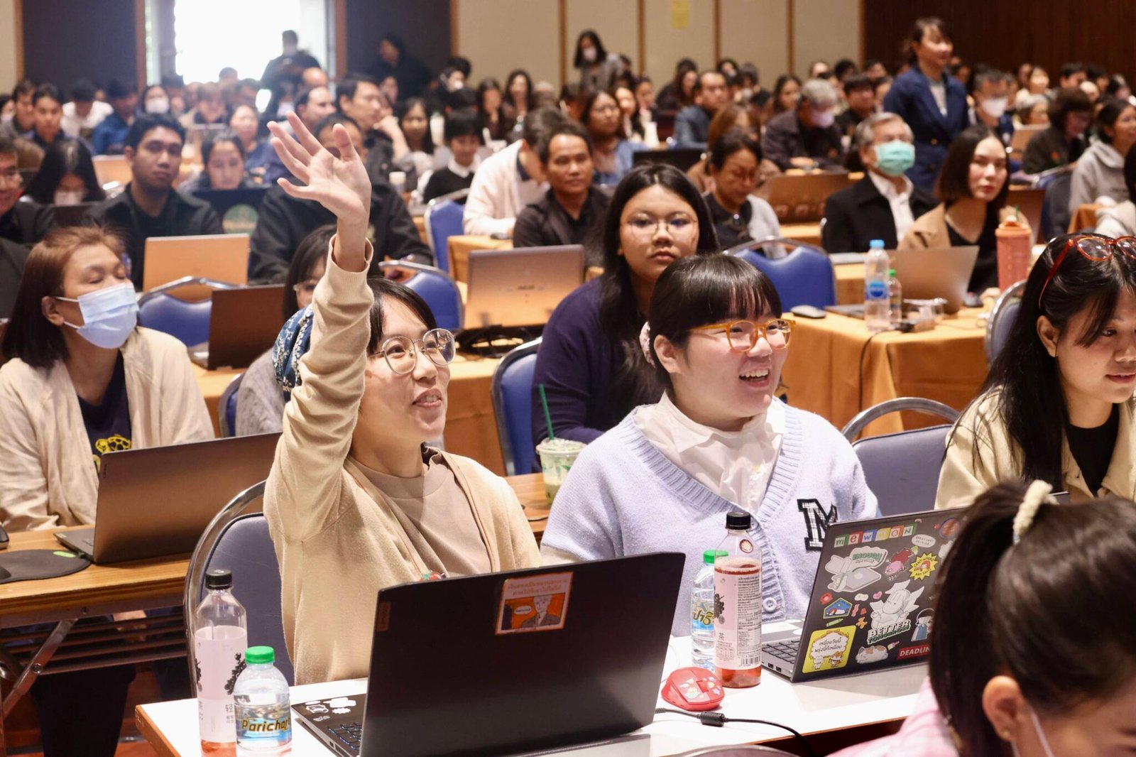ภายในงานยังได้รับเกียรติจาก รองศาสตราจารย์ ดร.ทวีวัฒน์ วัฒนกุลเจริญ อธิการบดีมหาวิทยาลัยสุโขทัยธรรมาธิราช ที่เน้นย้ำถึงความสำคัญของการใช้ AI เพื่อพัฒนาศักยภาพของคน องค์กร ชุมชนประเทศไทย และภาคประชาสังคม เพื่อให้ประเทศไทยมีความแข็งแกร่งทัดเทียมกับอานารยประเทศ ขณะที่ ดร. ศิธร กุลรดาธร รักษาการผู้อำนวยการฝ่ายนโยบายและยุทธศาสตร์ สำนักงานส่งเสริมเศรษฐกิจดิจิทัล ตอกย้ำความจำเป็นของภารกิจการขับเคลื่อนเศรษฐกิจและสังคมผ่านการพัฒนากำลังคนให้มีความรู้เท่าทันเทคโนโลยี ซึ่งถือเป็นสิ่งที่มีความสำคัญไม่น้อยไปกว่าการพัฒนาโครงสร้างพื้นฐานและกลไกส่งเสริมเศรษฐกิจอื่นๆ